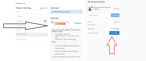 Điền thông tin nhận hàng và Chọn thanh toán qua Fundiin. Sẽ có tin nhắn xét duyệt gửi đến điện thoại bạn.